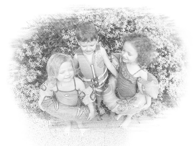 Awwww, such cute babies! Love how the flowers look in the sketch of the three older kids. Cool effect!