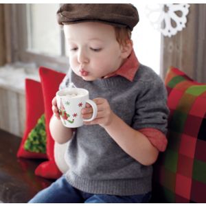 The bottle and glasses are from Ikea. They're just waiting for some Egg Nog. The little mugs are for hot chocolate for the grandbabies. I found them at Crate & Barrel. Actually I saw them on the cover of a sales brochure and had to go and get them. I think it had something to do with the "cuteness" of the little guy modeling with the mug!