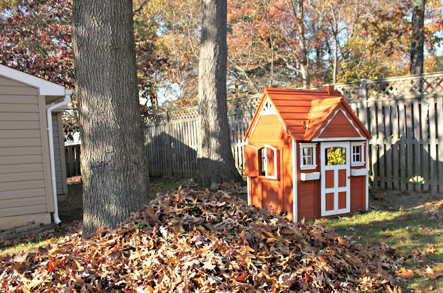 That is a lot of leaves and yes, it does look like there will be more raking parties. Love that little play house. So cute
